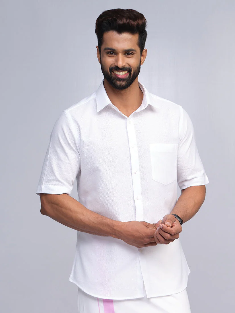 Mens Cotton Regular Fit Anti Stain White Shirt