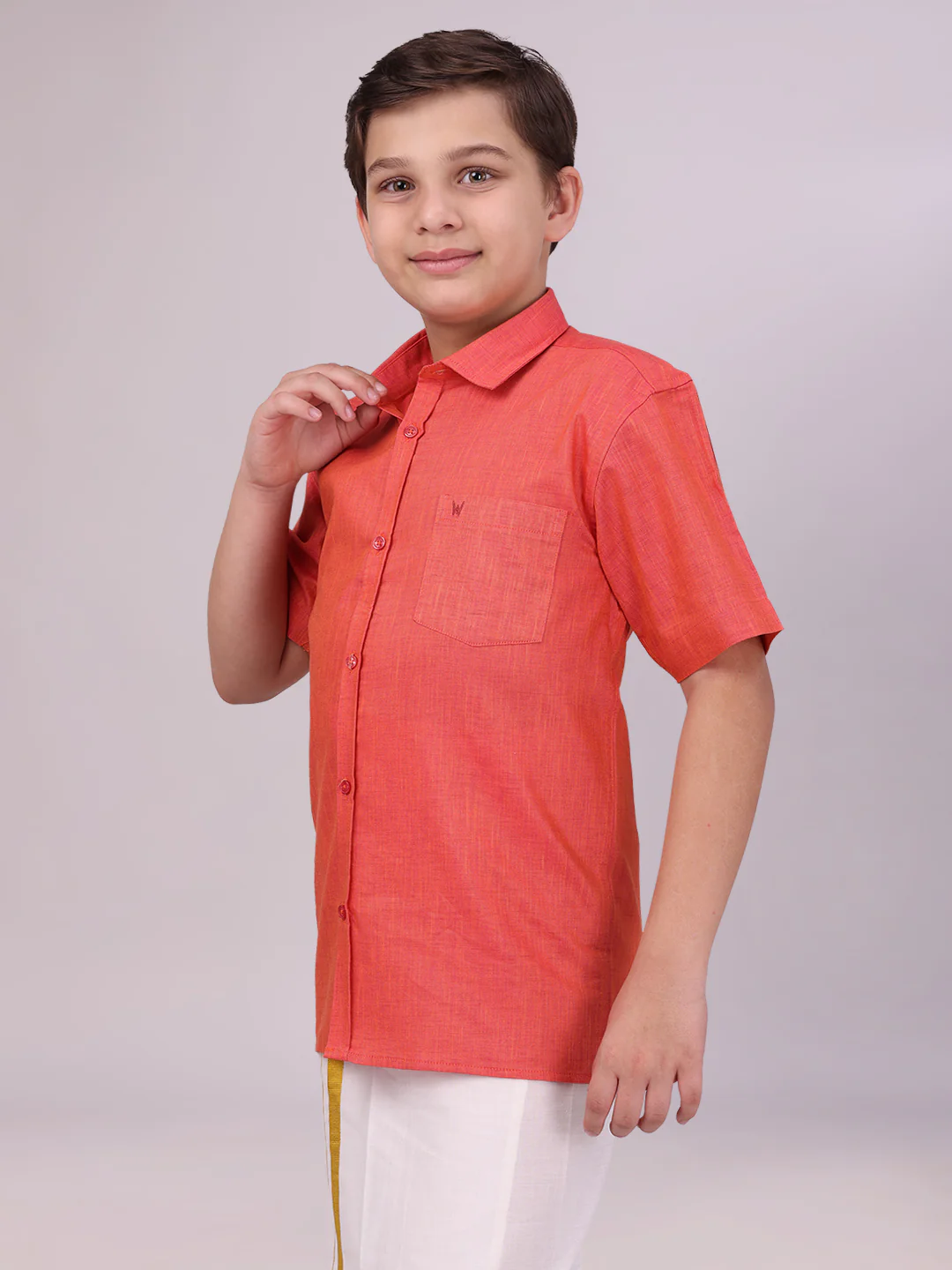 Boys Cotton Brick Colour Half Sleeves Shirt Friendly Boy