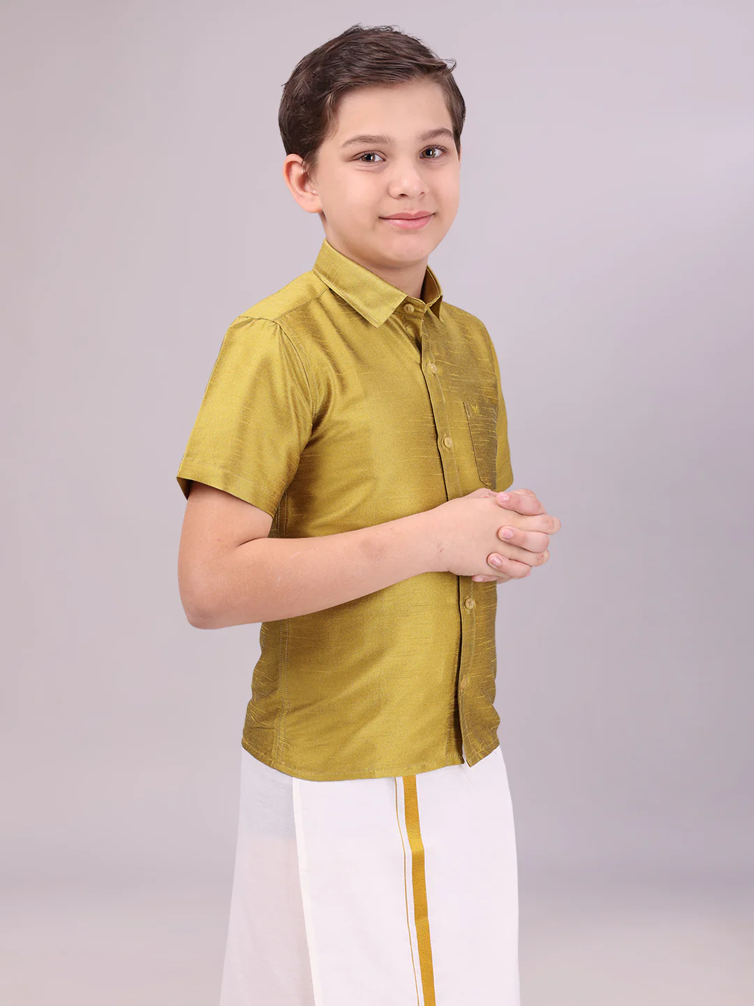 Introducing our Boys Dupion Satin Color Shirt, a perfect blend of style, comfort, and sophistication for your young gentleman. Crafted with meticulous attention to detail, this shirt is designed to make him stand out on any occasion.